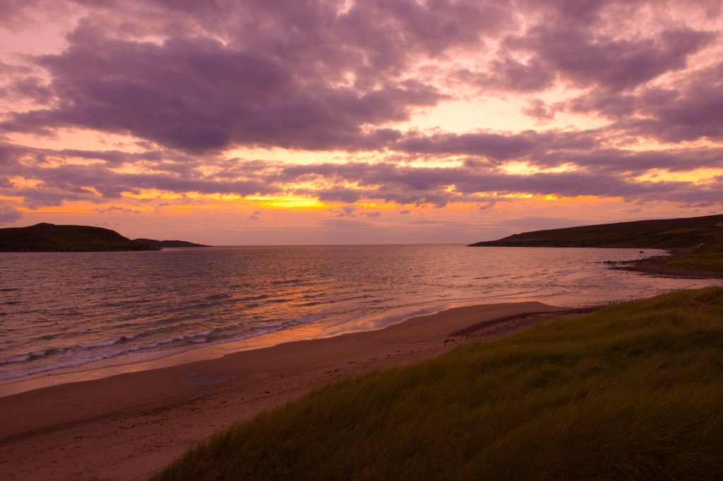 The scenery once you get past the Torridon turn off is wild and rugged with lots of big rocky terrain and lochs. We stayed at Big Sands a few miles outside of Gairloch where the campsite is actually on the sand dunes and the views from the van were stunning. The only challenge with the West coast can be the strong wind and this occasion was no exception. Any ideas of sitting on the beach in my shorts and flip flops were forgotten soon after arrival. We did however manage to enjoy a delicious BBQ in the long evening sunshine.