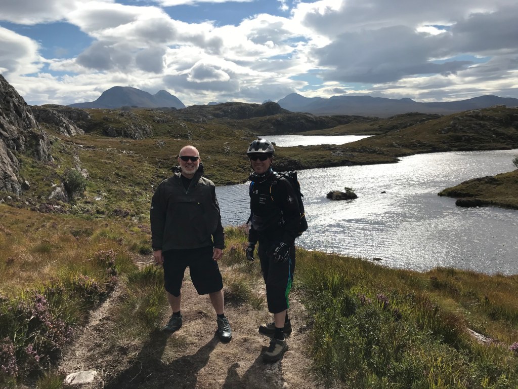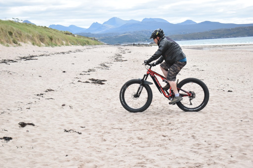 Our bike ride in this area was a bit different to usual as we wanted to visit the site of a World War II plane crash landing where we’d heard that it was possible to still see the remnants of the plane. This involved cycling to the start of the climb up to the Fairy Lochs and then abandoning our bikes at the bottom whilst we picked our way over the rocky terrain to climb up to the site. It was well worth the visit as there was a lot to see near the memorial. The single track trails back to town and lunch on Gairloch beach added to a fun day out.