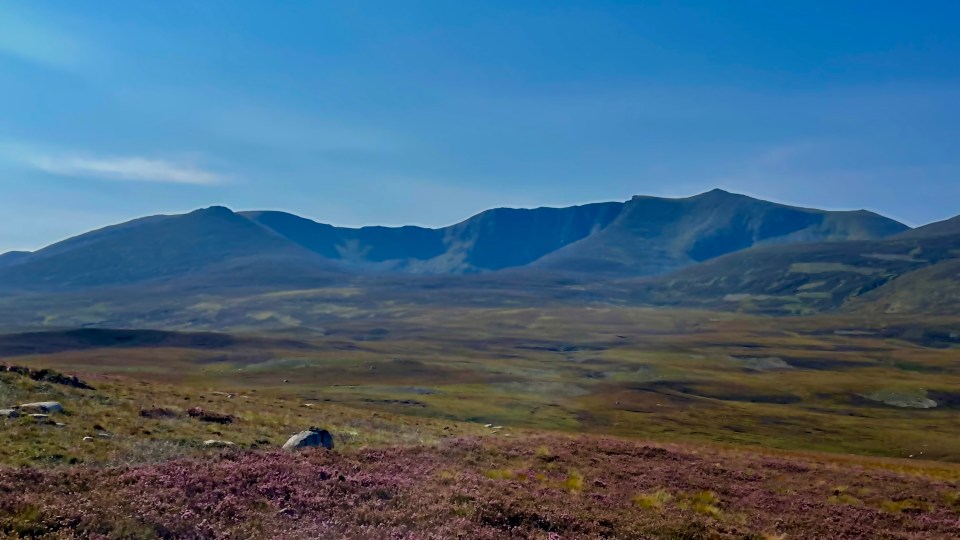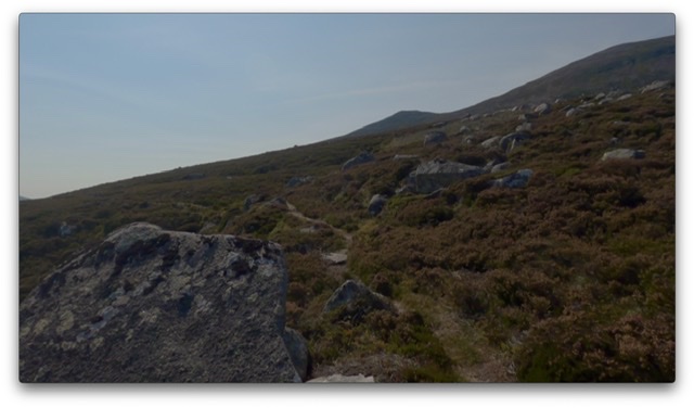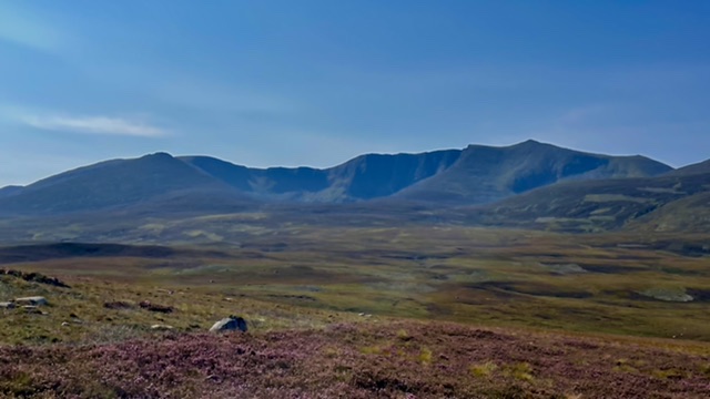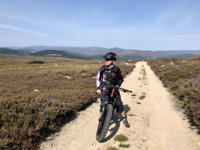 As we left the forest the landscape opened up to reveal stunning scenery …. as well as a very long double track climb south towards Lochnagar. It was rideable though and we kept going to the base of the trail up to the summit where the path narrowed to a black track. After a few km on the narrow track it became clear that my fear of the difficulty of the last 15k was well founded. Disappointed but sensible we turned around to go back the way we came.