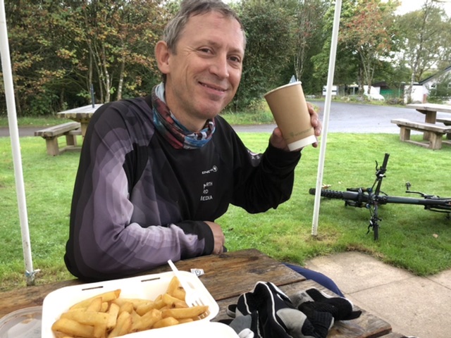 Took the opportunity to pop into the local cafe and bike shop for tea and chips.
