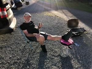Paul had a bit of an off on the switchback downhill and clobbered his shin on his bike frame – ouch! He cycled the rest of the trail but made the most of us fussing over him that night 🙂