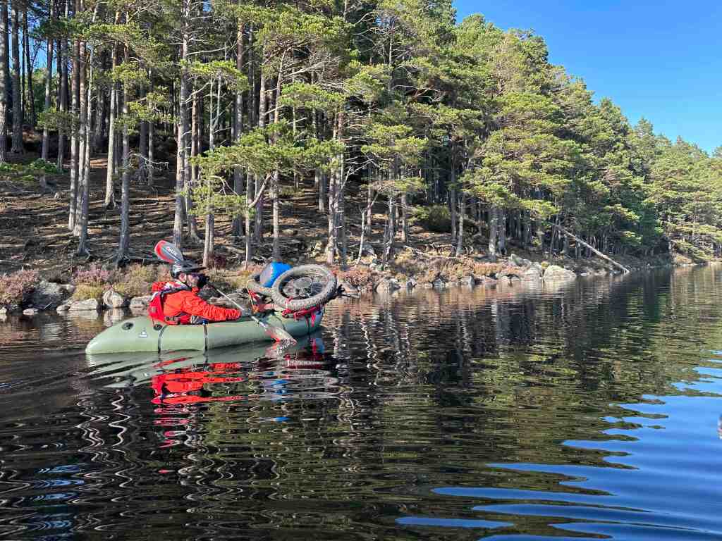 We took a late Friday afternoon spin out to Loch an Eilein to a small beach where we launched the rafts. This beach is known locally as the nudist beach although I’m not sure where it got that reputation as in the summer you get eaten alive by midges and the rest of the year it is too cold to get undressed!