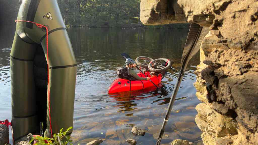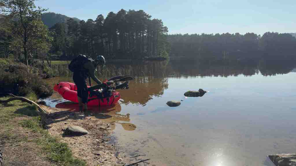 It was a lovely paddle, exploring the remnants of the castle in the loch and enjoying the evening sun. Illya snuck into the castle for a look whilst his bike took a dip as his raft tipped upright in the loch. I’ve never seen the water so calm and flat. Beautiful evening.