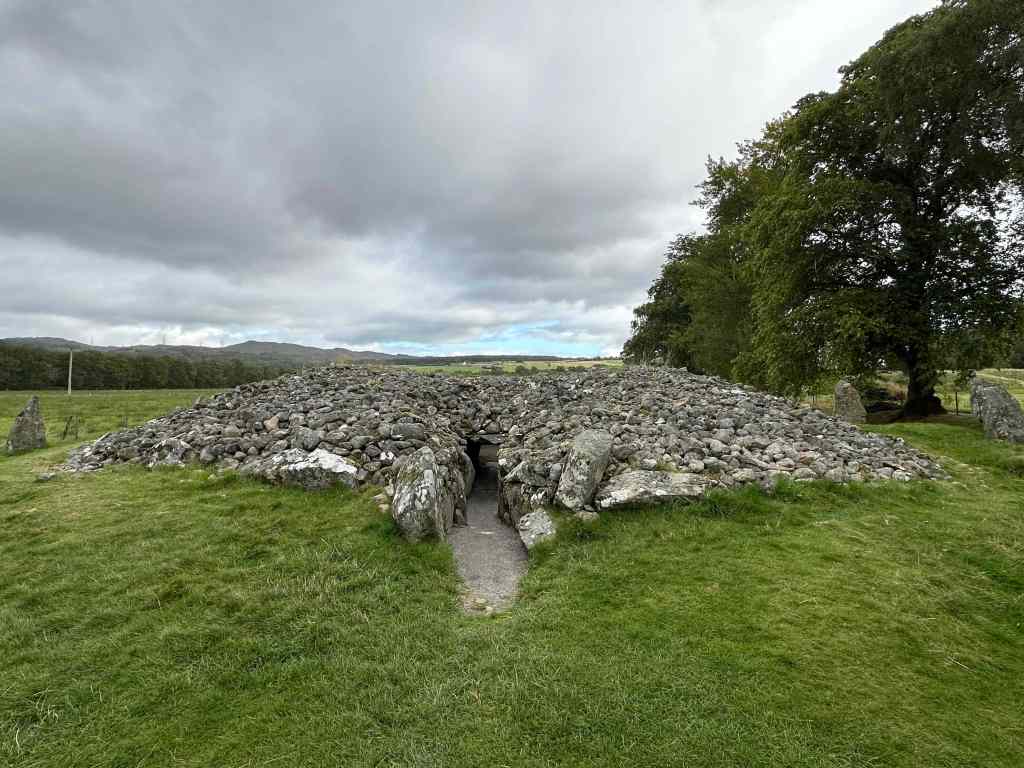 Leaving Laggan this morning we drove West to Spean Bridge and then turned North through Fort Agustus and alongside Loch Ness. Stopped on the way for pictures of the impressive dam at the end of Loch Laggan and also took the opportunity to visit the Falls of Moriston. No sight of Nessie today but we were impressed with the Corrimony Carin which is over 4,000 years old.