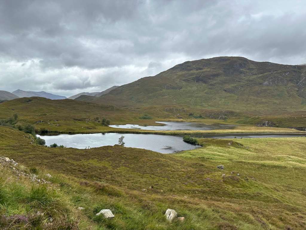We were looking forward to going back to Glen Affric as we had a great bikepacking trip here many years ago. The scenery didn’t disappoint even though it was overcast. The midges seem to still be thriving here though despite the “midge season” being over. We had to do the midge dance to get our stuff packed back into the van and then drove with the windows open to try and get rid of them.