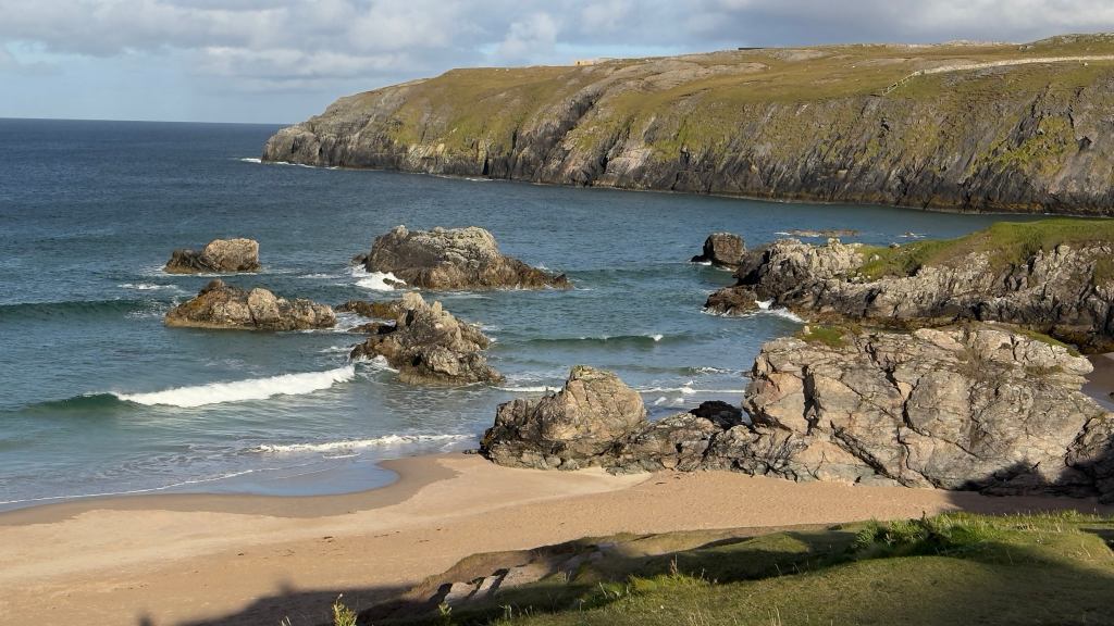 We slowly made our way along the coast stopping to see the many beaches along the way. We had planned to spend a night at a campsite at Bettyhill but it was in a bit of a state and the weather was not as sunny as we hoped so we decided to keep moving.