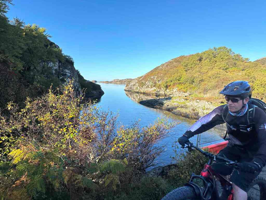 We set off on the bikes to explore the area. The great thing about Scotland is that there is no differentiation between paths and so you can follow any black track on a map whether you are cycling or walking. The flip side of this freedom to roam means that you never quite know what the track will be like as they vary greatly. Today the tracks were a mixture of sections we could ride and sections we needed to push the bikes so it was slow going, but the scenery was stunning. We didn’t cover that much distance but we enjoyed half a day out, including a stop at the Lochinver Larder for a cup of tea and another pie before we cycled back.
