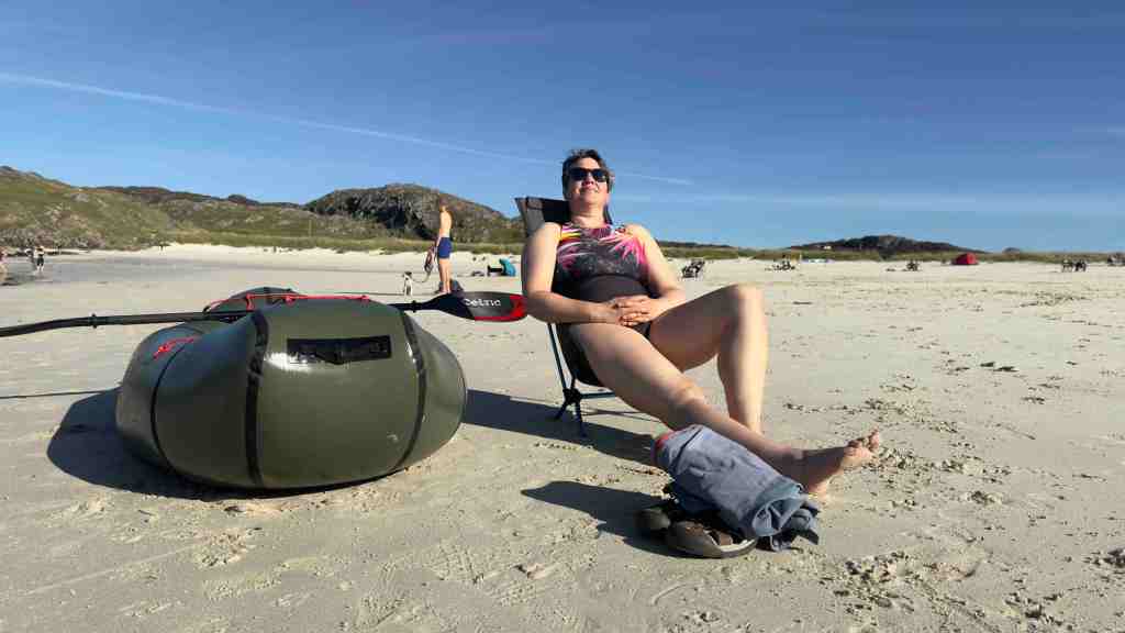 This afternoon we spent on the beach. Illya tried our inflatable bike rafting kayaks in the sea and enjoyed exploring the little bays close to the shoreline. I lounged about on the beach soaking up some sun (and keeping an eye on him as I had visions of him drifting out to sea!).