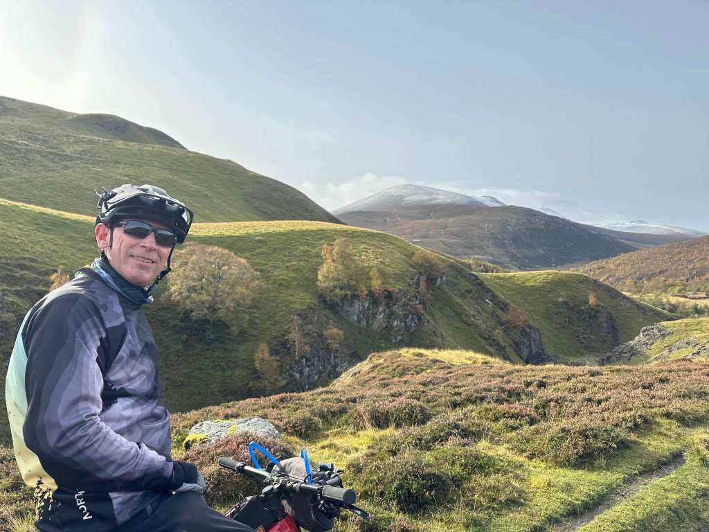 Every month the North East “fat bike” club meet for a social ride. Although we live a long way from most of the members, we enjoy being out in a group riding on our fat bikes. (Note “Fat” refers to the tyre size and not the size of the rider!). This month the ride was 45km long and in a remote part of the Cairngorm National Park, starting at Corgarff Castle near Cock Bridge.