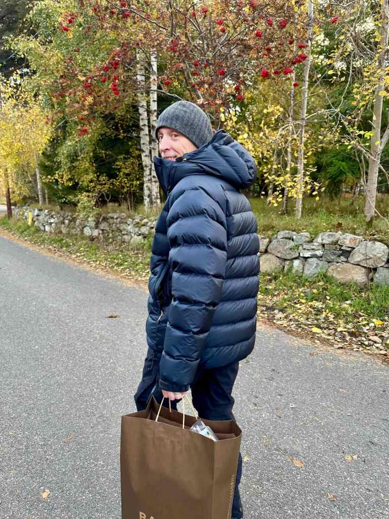 We do love Braemar as it is such a beautiful town and surrounding area. We got a few hours break in the rain and managed to do a short walk to the top of a local hill overlooking the town. The autumn views did not disappoint. And on the way back through town Illya did a bit of shopping and updated his winter jacket to make sure he was all prepared – the mountain ash trees are laden with red berries this year which is supposedly a sign of a harsh winter ahead.