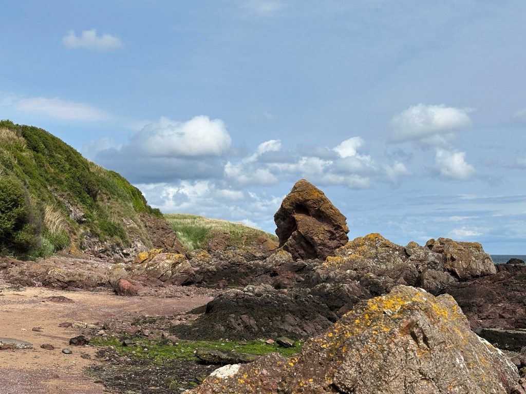 Another walk from St Abbs, this time in an easterly direction, took us to Coldingham bay. The beaches in this direction were more sandy but the landscape still littered with volcanic rock and river gorges.