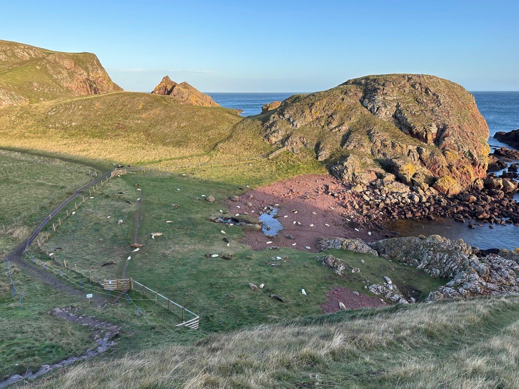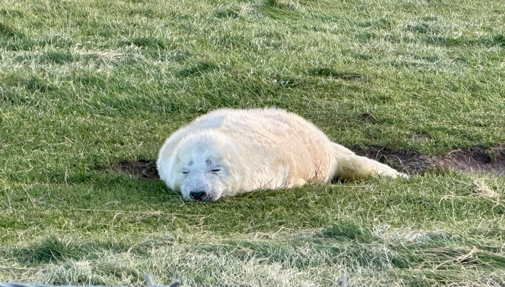 When we were in St Abbs a month ago we discovered that during November the grey seals returned to the local coves to have their pups. At the time we saw several female seals start to come onto land but it was too early to see the pups. So today that’s where we returned. We walked the coastal path within the RSPB reserve at St Abbs Head and look what we saw! So cute.