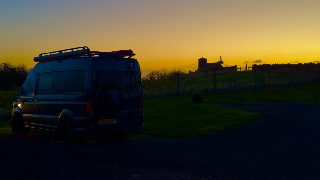 Today we drove to Glentress forest at Peebles. We haven’t been here since before the pandemic and it has changed a lot. There are new camping facilities now so we are staying here for the first time. The facilities are a bit basic and the pitch is not flat, but we have the benefit of being right at the trail head. We enjoyed a great evening bike ride with our lights. Fun fun fun.
