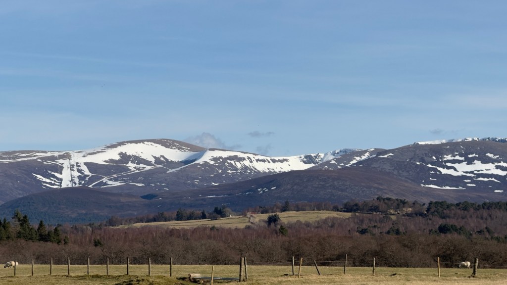 We were on the bikes in glorious sunshine today but the view of ski hill shows the snow shrinking fast 😢.